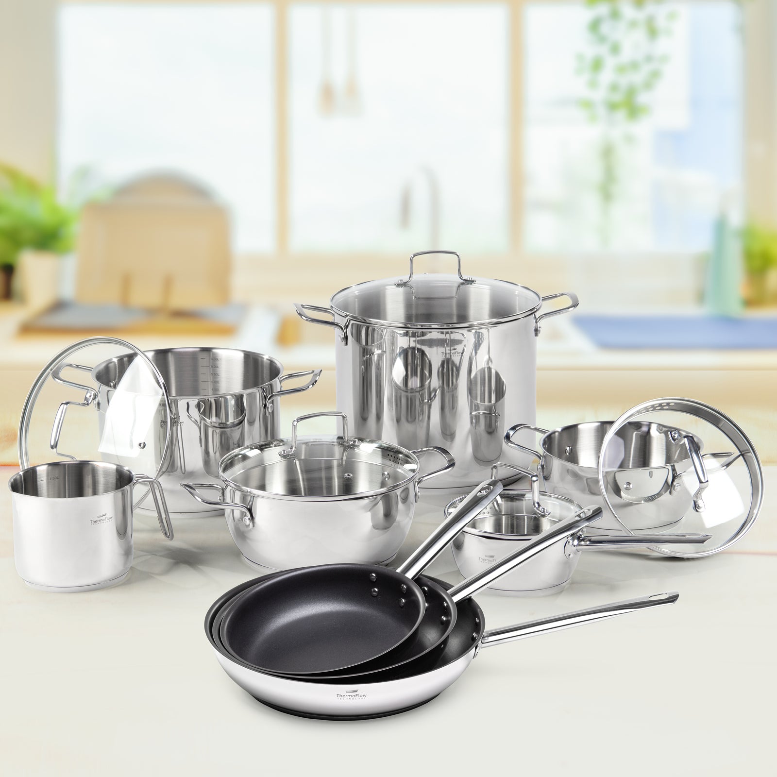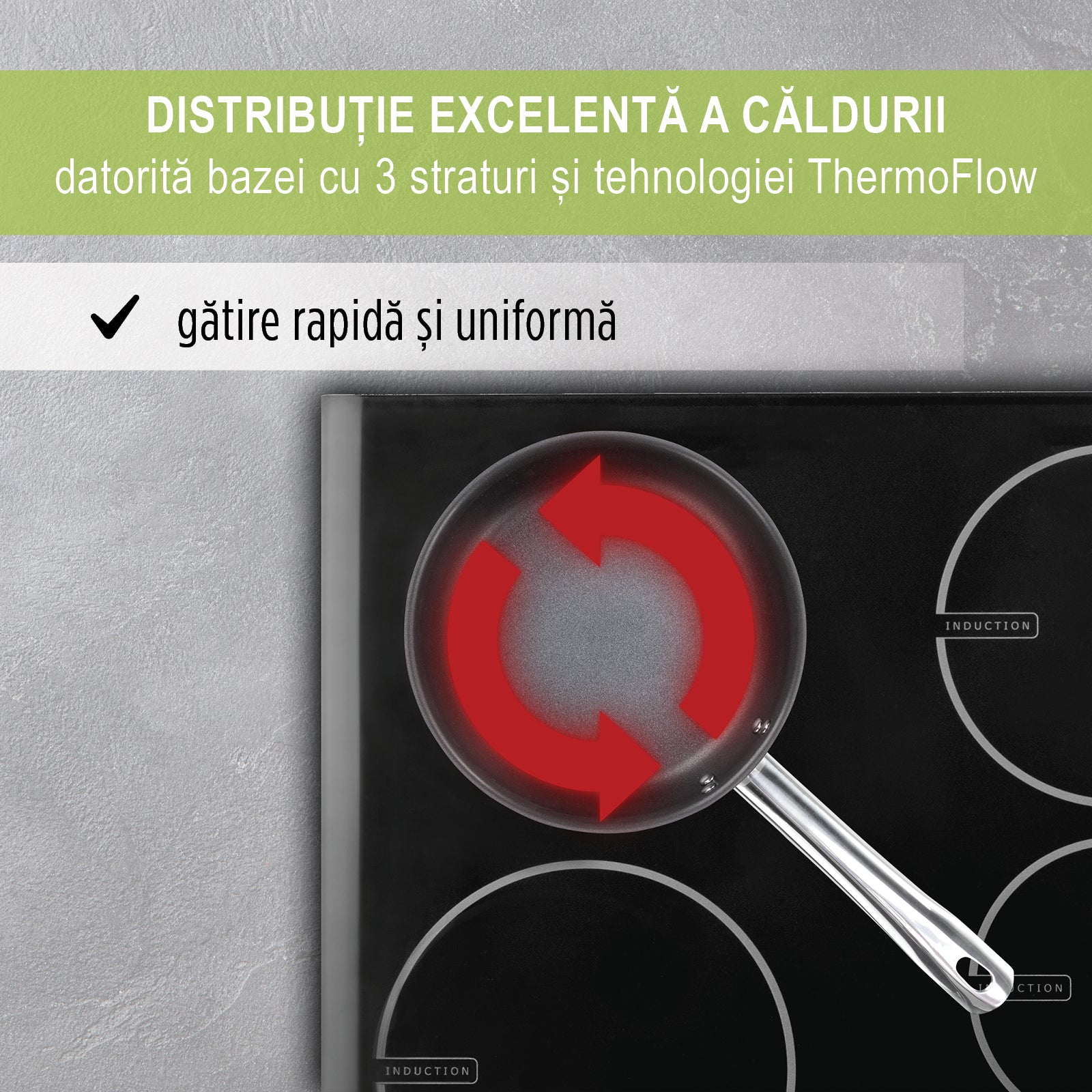 Bază cu 3 straturi pentru durabilitate și tehnologia ThermoFlow pentru o distribuție excelentă a căldurii.