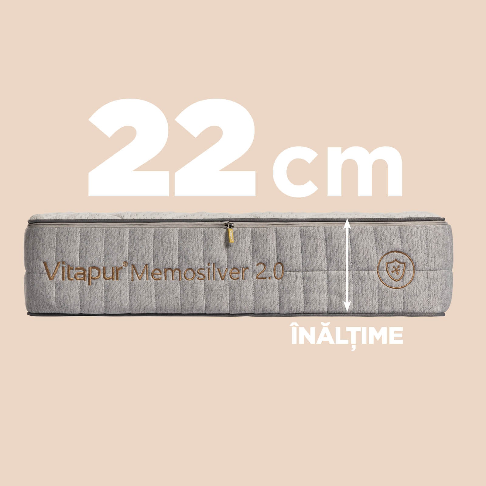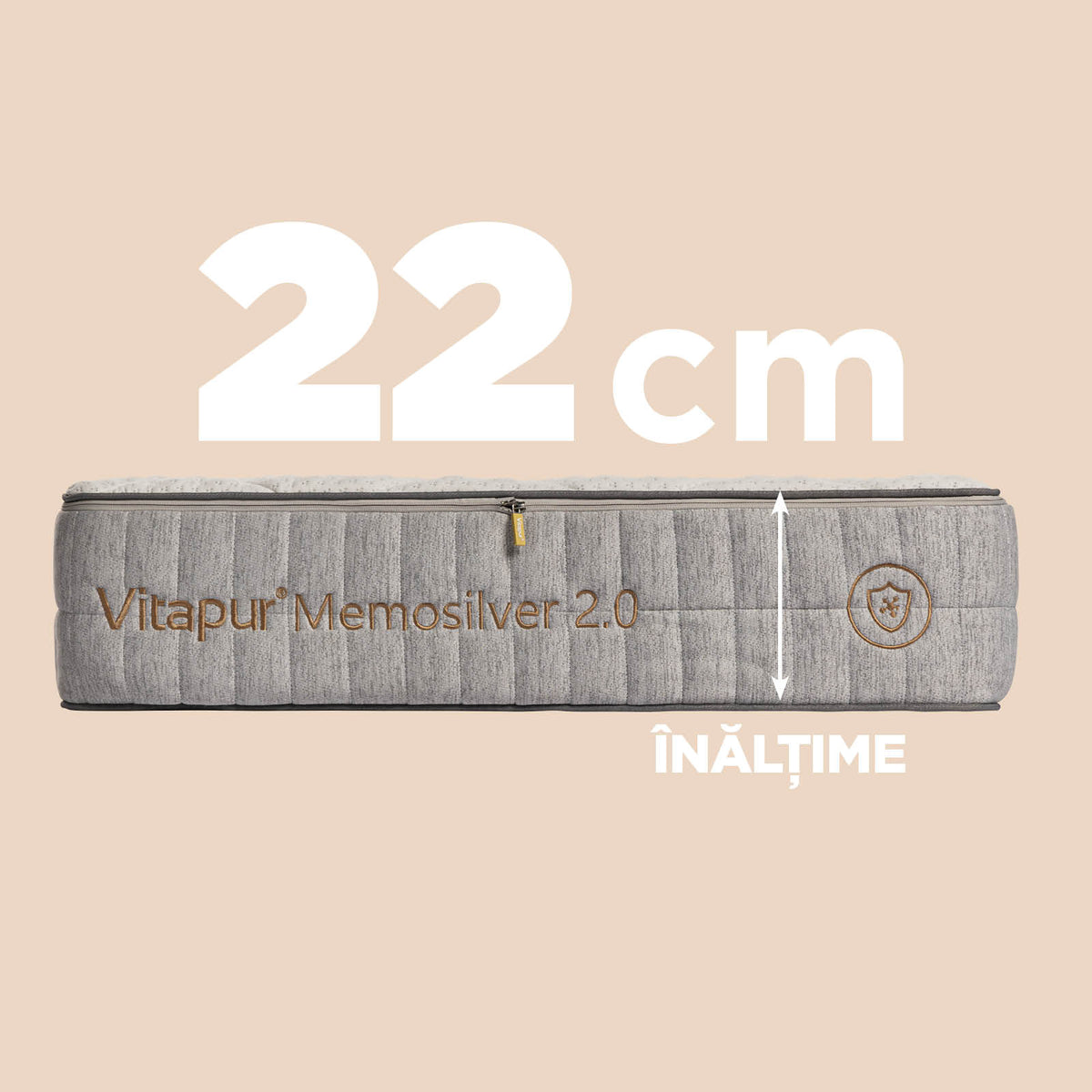 MemoSilver 2.0 este o versiune semnificativ îmbunătățită a uneia dintre cele mai populare saltele ale noastre, creată pentru a oferi un plus de confort și susținere. Cu o înălțime de 22 cm, această saltea combină tehnologia avansată a confortului cu spuma fermă de susținere, oferindu-ți o experiență optimă.