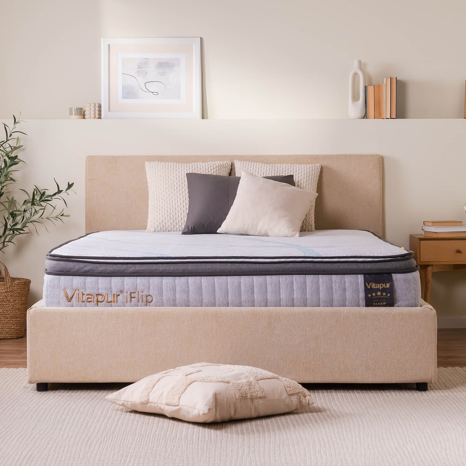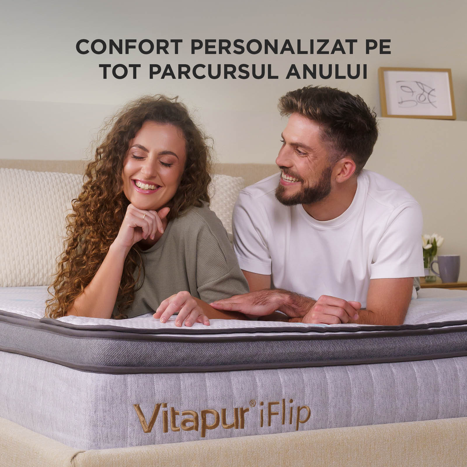 Salteaua hibridă Vitapur iFlip îți oferă confortul de care ai nevoie – exact așa cum îți place. Poți alege două niveluri de fermitate, deoarece topperul din spumă se întoarce ușor, în funcție de preferințele tale. O parte este mai moale și super confortabilă, iar cealaltă este mai fermă, pentru o susținere mai bună a corpului – perfectă pentru nevoile individuale. Topperul reversibil, conceput pentru toate anotimpurile, este ideal pe tot parcursul anului: o parte menține un mediu de somn răcoros în lunile calde, iar cealaltă oferă o senzație plăcută de căldură în zilele reci. Este ca și cum ai avea două saltele într-una singură, create să se adapteze la tine și la stilul tău de viață. Fără compromisuri în materie de confort – întoarce topperul, relaxează-te și bucură-te de un somn personalizat pe tot parcursul anului.