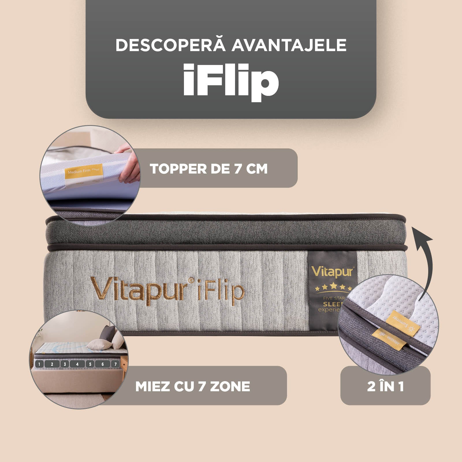 - Dezvoltată împreună cu experți în somn și testată în peste 30 de etape pentru a confirma standardele ridicate de calitate ale saltelelor Vitapur.