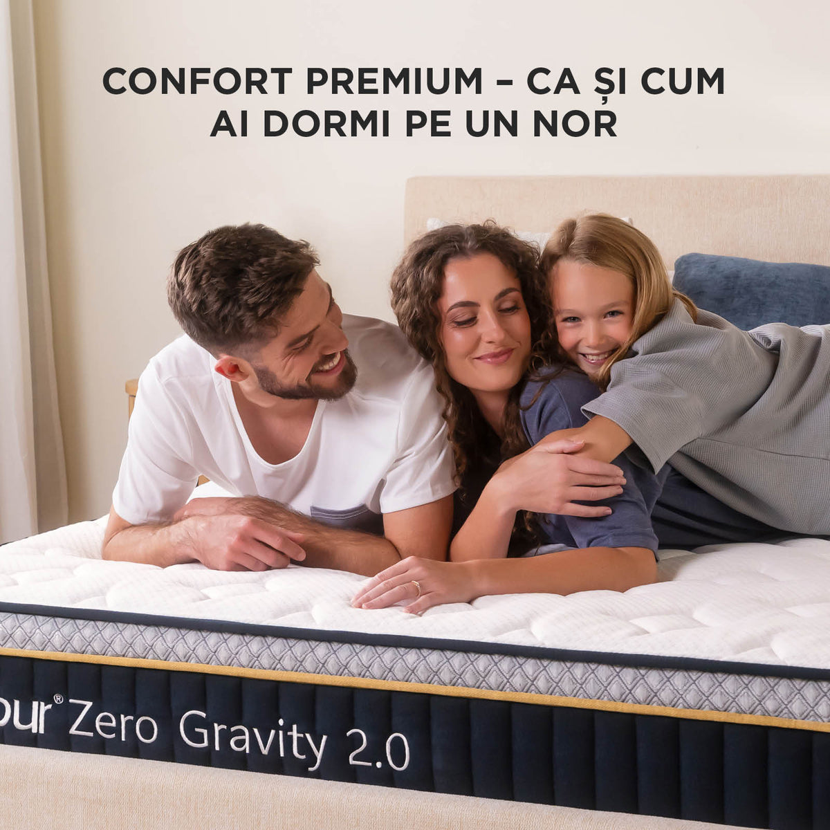 Salteaua Zero Gravity include spuma specială BreathFlex, asemănătoare latexului ca structură și proprietăți. Această spumă inovatoare este extrem de flexibilă și se adaptează poziției corpului, permițând o circulație excelentă a aerului. Căldura în exces este eliminată eficient, menținând salteaua uscată și curată. Pentru că nu te supraîncălzești, nu te vei trezi și nu te vei foi în timpul somnului – dormi bine și te trezești odihnit și plin de energie. Pentru un plus de confort, husa matlasată include 3 straturi de spumă, inclusiv spumă cu memorie, care învăluie corpul și amplifică senzația de somn odihnitor.