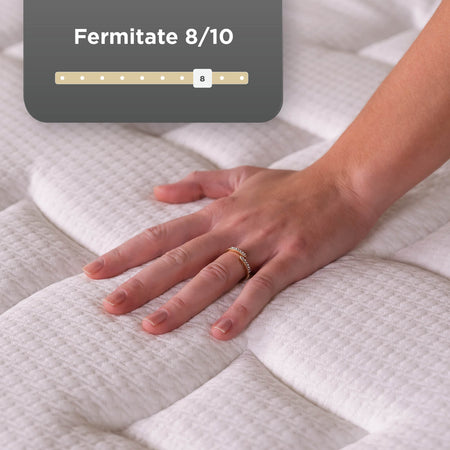Design rafinat care reflectă luxul și calitatea premium a saltelei.