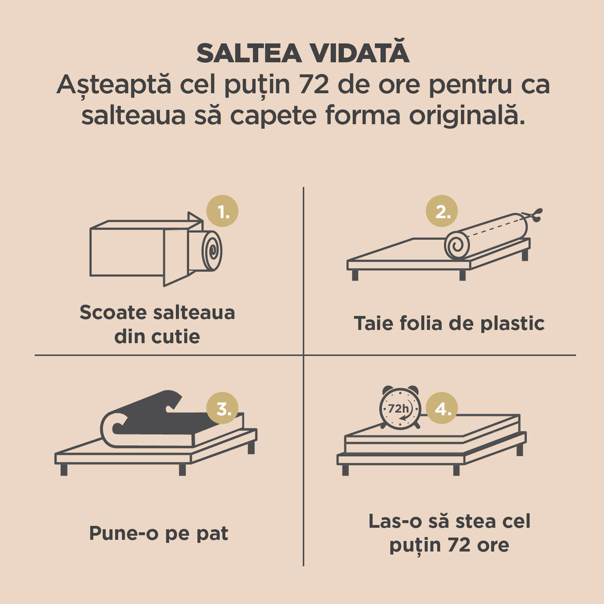 - Dezvoltată împreună cu experți în somn și testată în peste 30 de etape care confirmă standardele înalte de calitate ale companiei Vitapur.