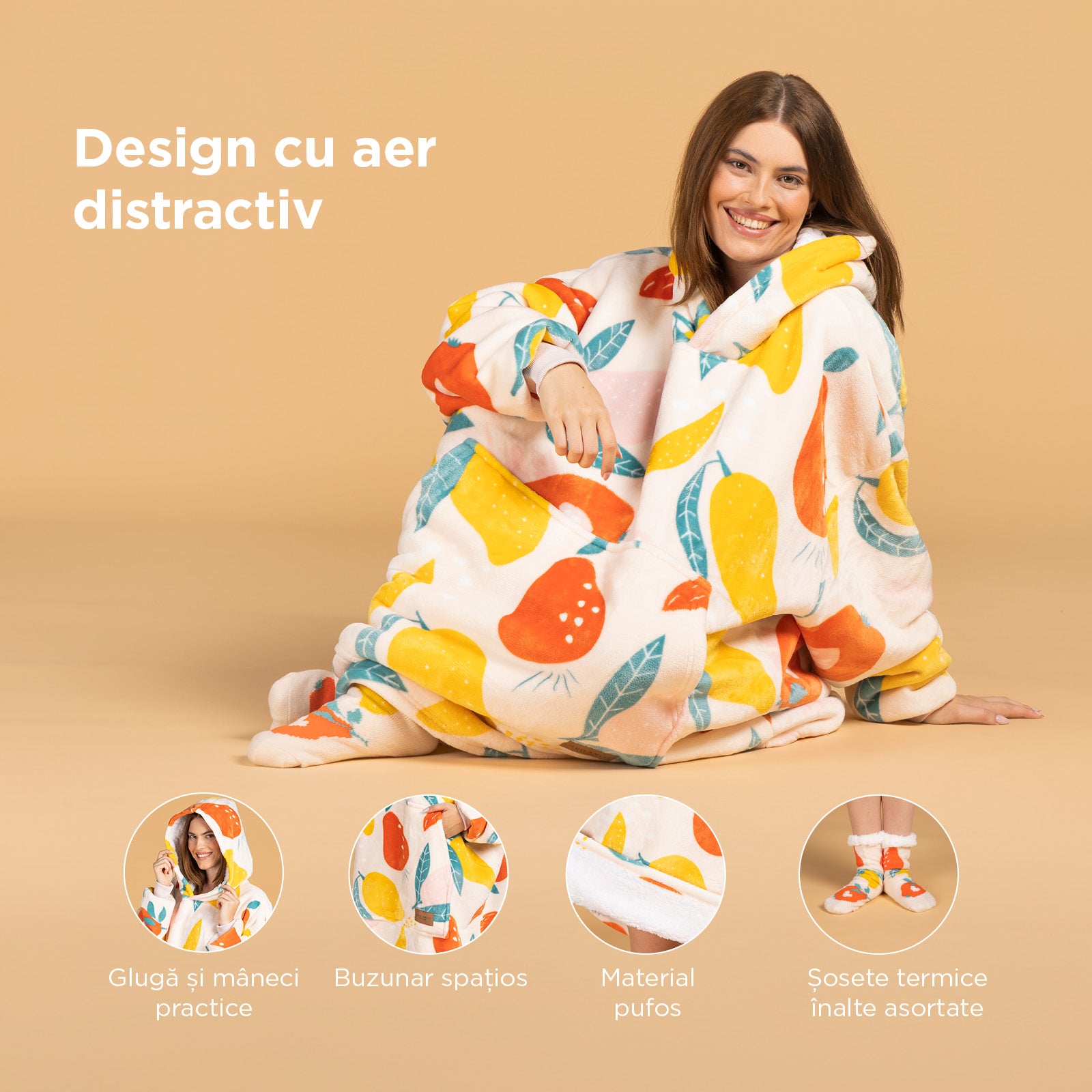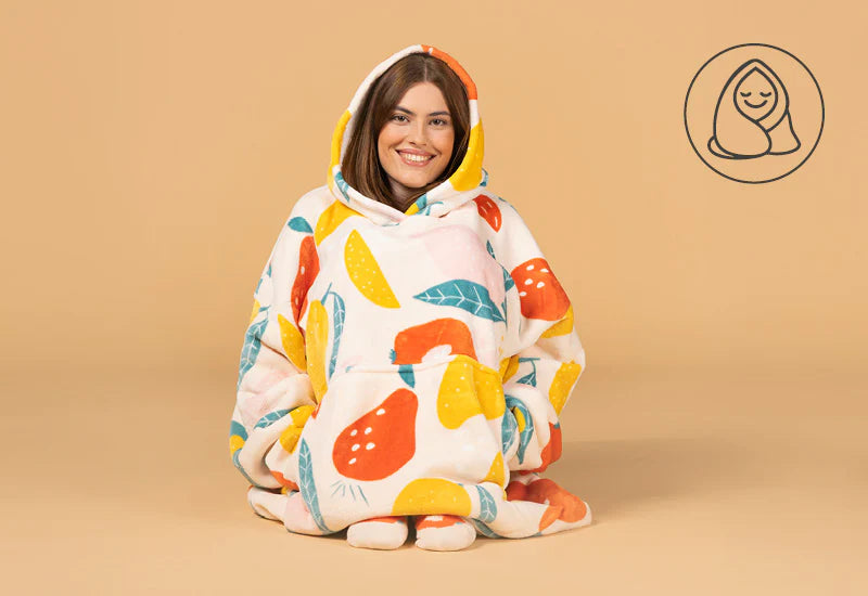 Pătura hanorac este un cadou extrem de practic pentru tine, pentru cei dragi, pentru cupluri, pentru familie sau pentru prieteni. Având o mărime universală și fiind realizată fără substanțe chimice nocive (certificat OEKO-TEX Standard 100), este potrivită pentru oricine, inclusiv pentru cei cu pielea sensibilă.