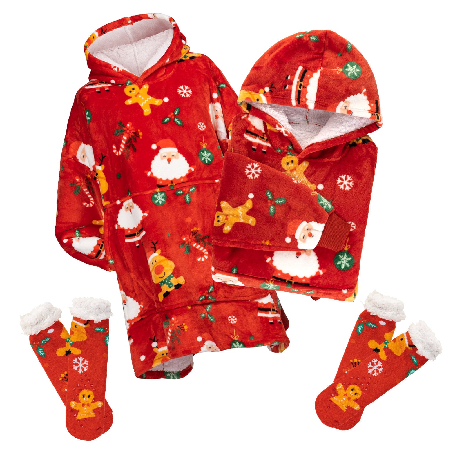 • Șosete călduroase cadou, cu protecție antiderapantă și același model ca pătura hanorac.