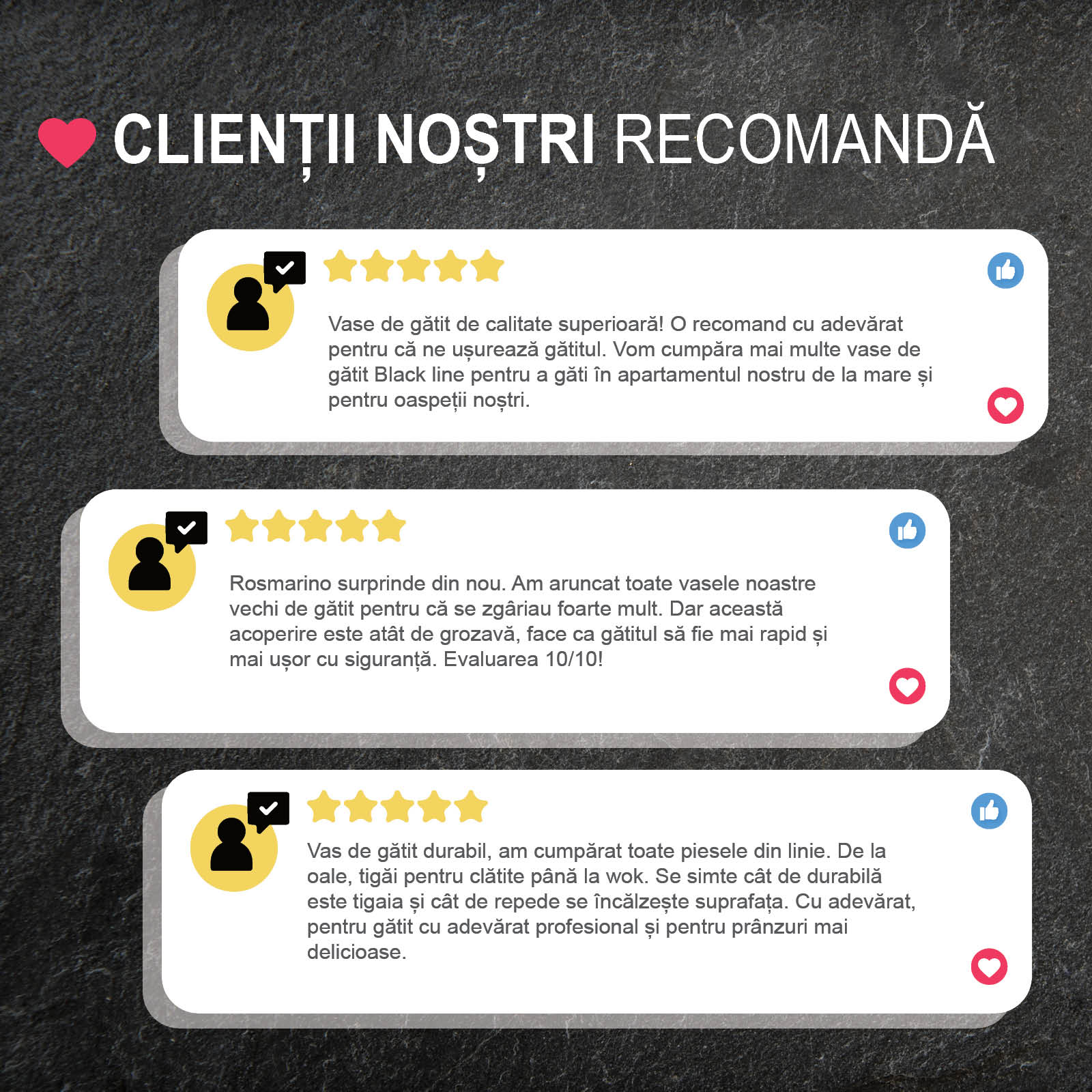 - Toate vasele noastre de gătit sunt proiectate conform celor mai înalte standarde și nu conțin substanțe nocive precum PFOA sau alte chimicale periculoase.