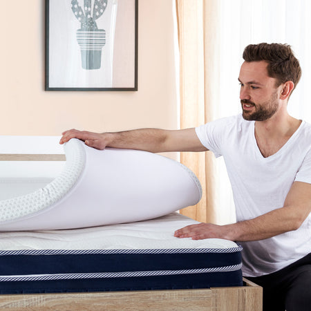 Așezați topperul MemoSilver peste salteaua dumneavoastră veche, o canapea mai puțin confortabilă sau chiar direct pe o podea tare în timpul unei sesiuni de camping – și veți transforma orice suprafață într-un pat de vis.