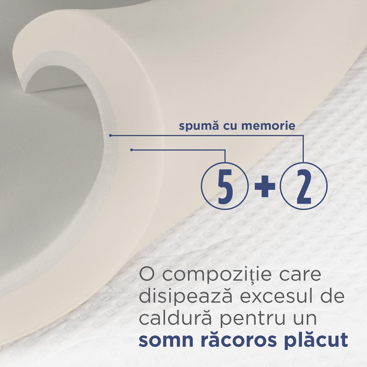Temperatura optimă a corpului este esențială pentru un somn de calitate.Spuma noastră specială cu memorie este concepută pentru a disipa excesul de căldură, contribuind astfel la menținerea unui climat termic plăcut și oferindu-vă un somn odihnitor, noapte de noapte.
