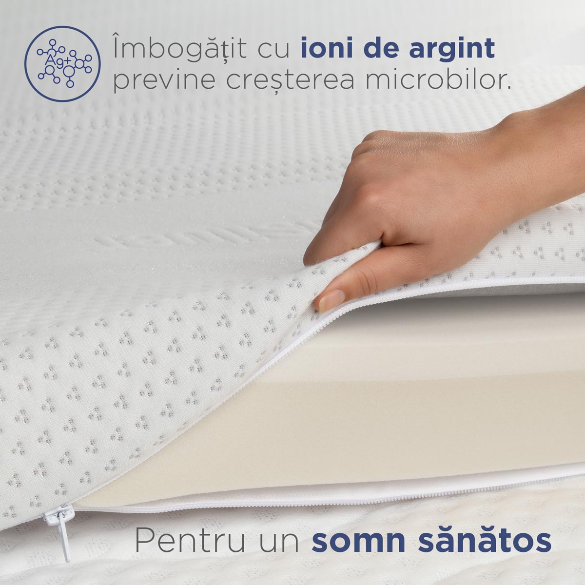 - Husă cu ioni de argint pentru un mediu de dormit mai curat.
