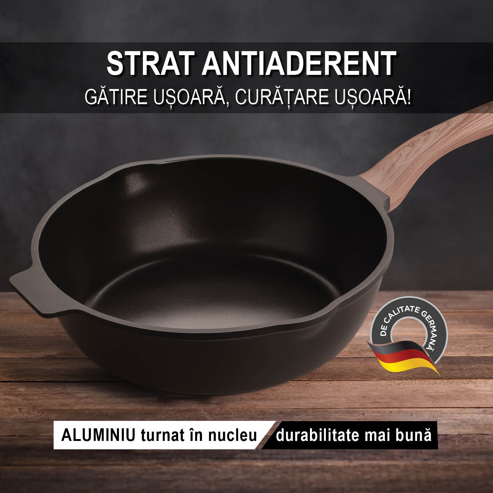 - Wok cu diametrul de 30 cm, realizată din aluminiu turnat de înaltă calitate.